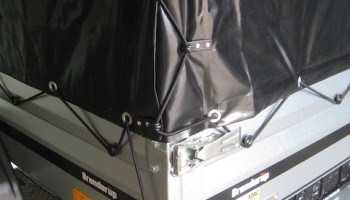 hier angeboten mit Original-Hochplane von Brenderup, Farbe schwarz, vorn und hinten zu öffnen, Innenhöhe ab Anhängerboden ca. 117 cm,