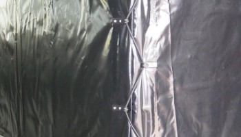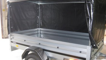 der Anhänger kann ohne Plane hochkant gestellt werden,