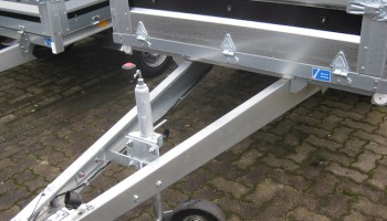 Der Anhänger hat ein robustes Rahmenfahrgestell mit einer äußerst stabilen V-Deichsel vorn.