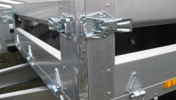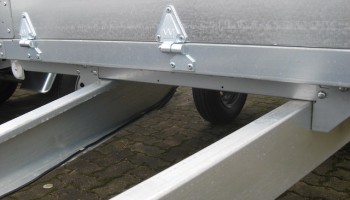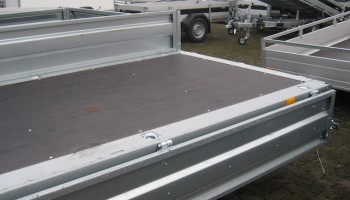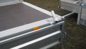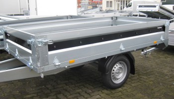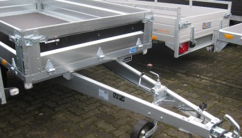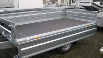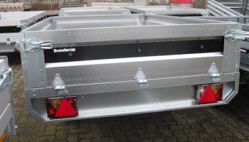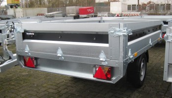 Der Brenderup 4260 SUB 750 hat eine robuste, verzinkte Stahlbordwand, 4-seitig abklappbar, die Eckrungen sind herausnehmbar.