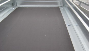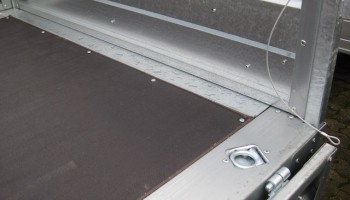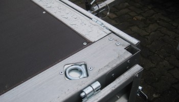 Der Boden ist eingefasst in einem stabilen Bodenrahmenprofil. In dem Stahlprofil sind pro Seite 3 Stück Verzurrösen eingelassen.