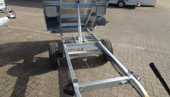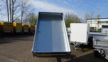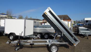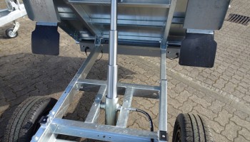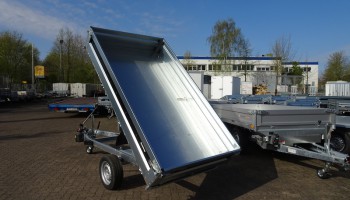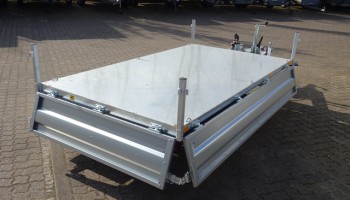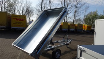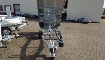 durch den hohen Kippwinkel der Ladefläche eignet sich der Anhänger zum Be- und Entladen von Kies, Holz und Baumaterial,