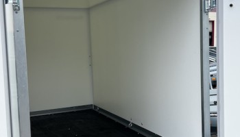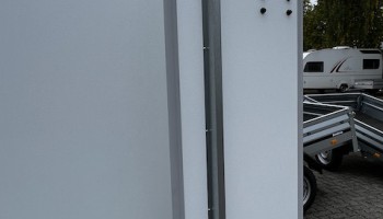 robuster Aufbau aus glasfaserverstärkten, stoßfesten Verbundplatten, weiß, hinten mit Doppelflügeltür, abschließbar,