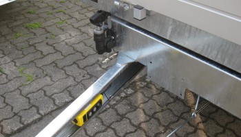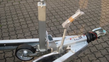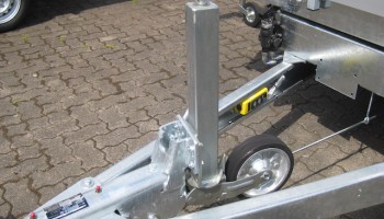 Das Stützrad vorn ist ein Schwerlaststützrad, dessen Schwinge sich beim Kurbeln automatisch einklappt.