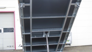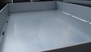 Der Boden besteht aus einer wasserfest verleimten Siebdruckplatte mit einem Zinkblech als Verschleißschutz obenauf.