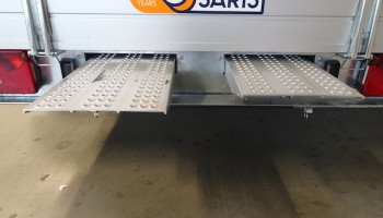 hier angeboten mit Auffahrschienen unter der Ladefläche eingeschoben, Tragkraft pro Stück 1000 kg,
