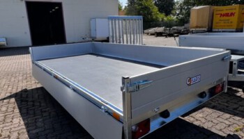 Die doppelwandigen Alu-Bordwände sind allseitig abklappbar und abnehmbar.