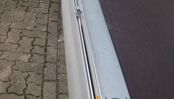 Aluminium-Hohlprofil, eloxiert, vierseitig abklappbar, abnehmbar, mit versenkten Verschlüssen.